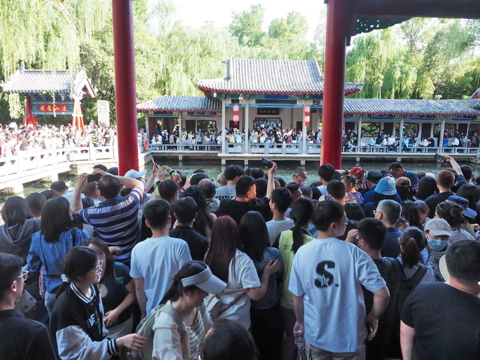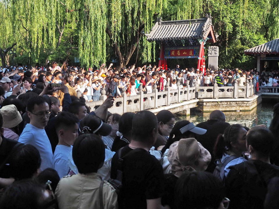 五一长假首日,济南趵突泉内,汗牛充栋的旅客赶来观赏趵突泉的清秀姿容。