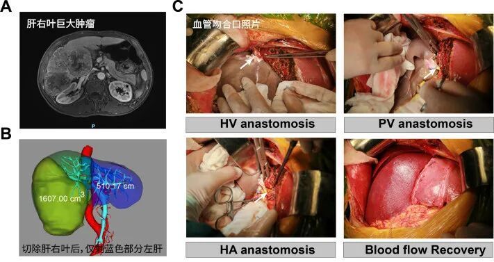 医师切除了患者的右半部分肝脏,将猪肝流畅到残余的右侧肝血管,与患者的左半部分肝脏共同职责 | 参考文件