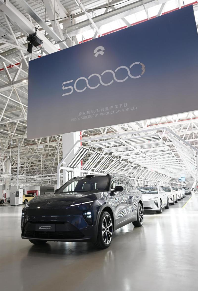 在安徽省合肥市新桥智能电动汽车产业园蔚来合肥第二工场,蔚来第50万台量产车下线(2024年5月9日摄)。新华社记者 周牧 摄