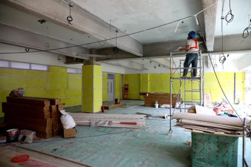 记者在育园小学新建工程时势一期成就现场看到,教学楼外立面还是完成成就。教学楼内的地砖铺设与墙面粉刷也已完成,工东说念主正在进行多功能教室的吊顶功课。