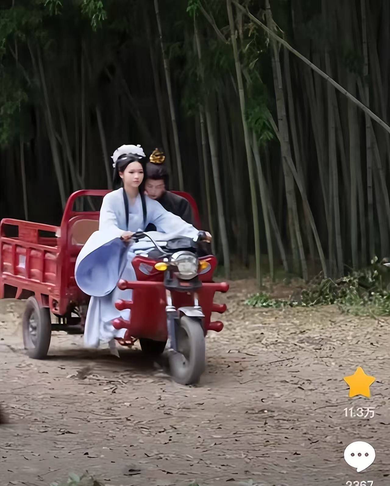 这还没完呢,女主在看到了王爷被东说念主追杀之后,平直开着一辆红色三蹦子在土路上狂飙,把拿着刀剑的暗卫给创得七零八落的。