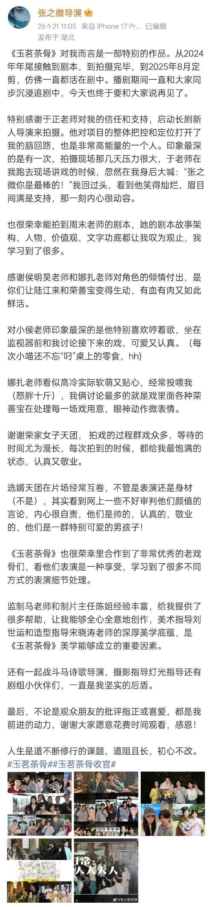 《玉茗茶骨》的导演张之微发了告别。