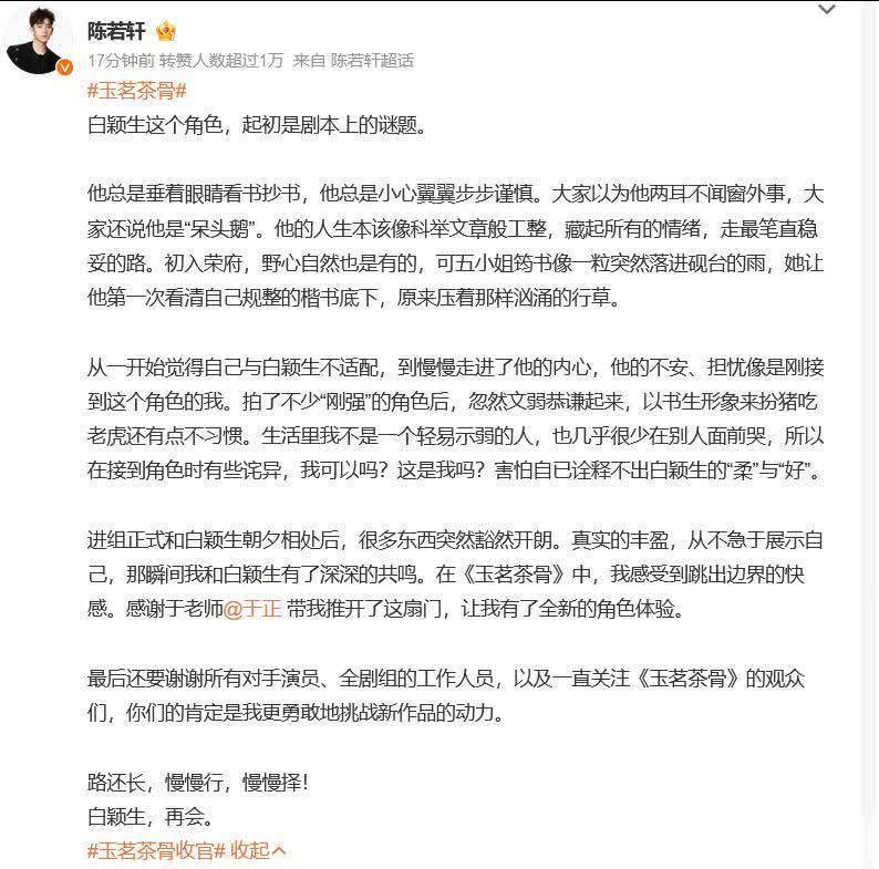 这部剧看得出来各人齐很珍视,给我方的变装真情实感的写了收官文,不雅众也感受到了珍视,不少东谈主齐不舍得停止。