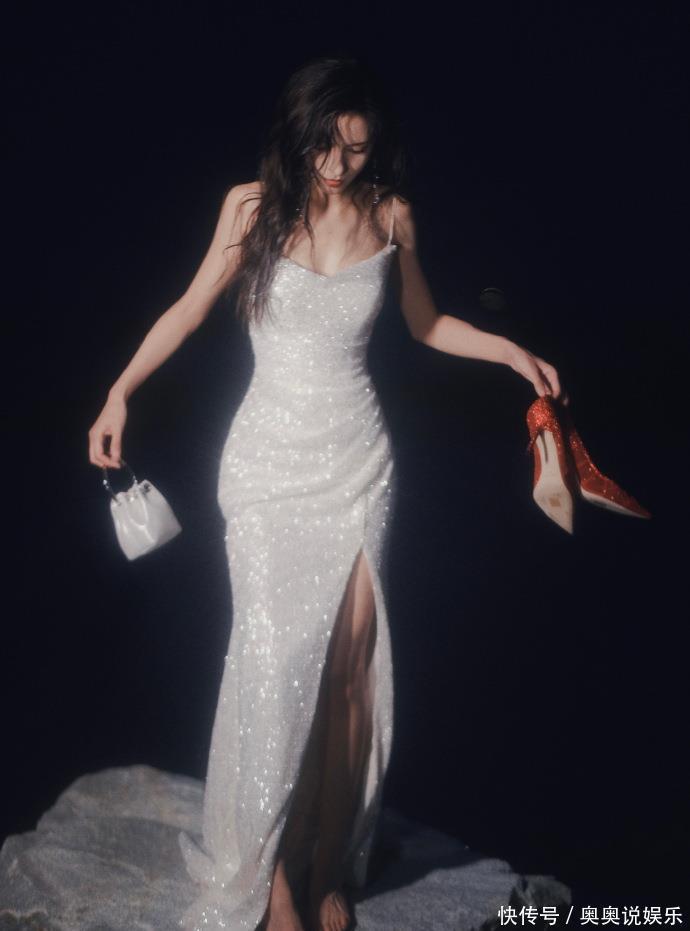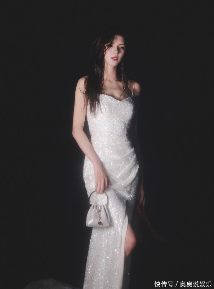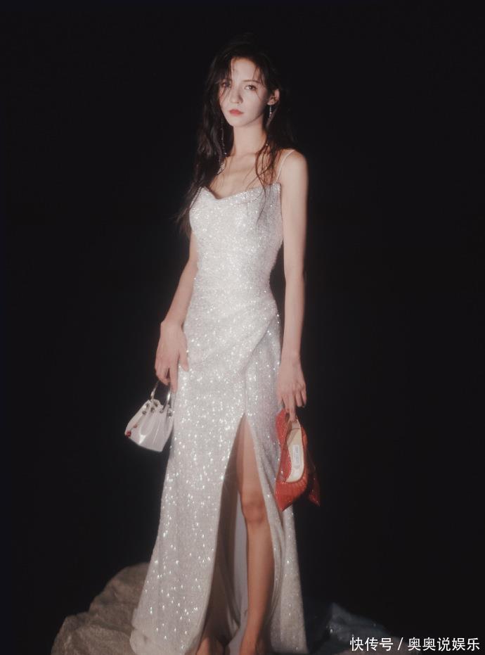 白钻礼裙:把“流动的银河”穿在身上在第一组写照中,张予曦化身高冷女神。她身着一袭玄色底衬的抹胸白钻礼裙,满缀的银白碎钻如银河流动,在冷调光影下秀丽瞩目。