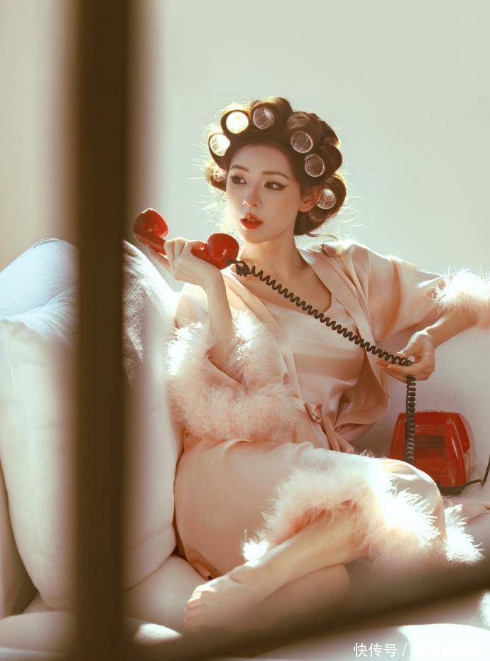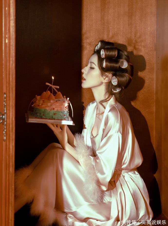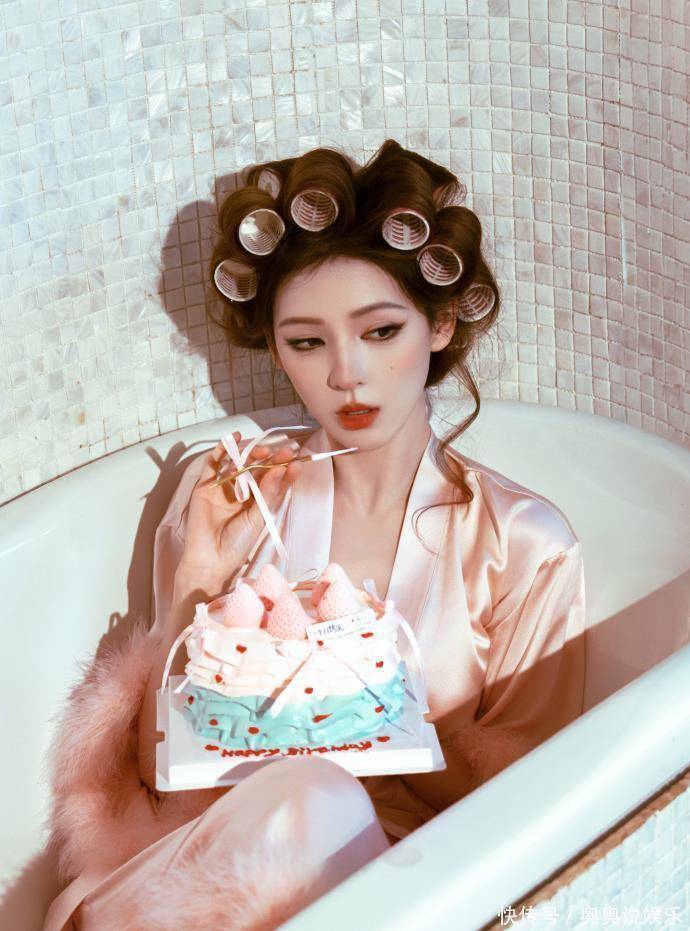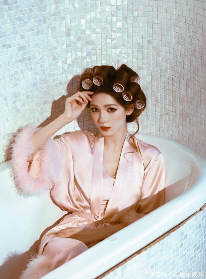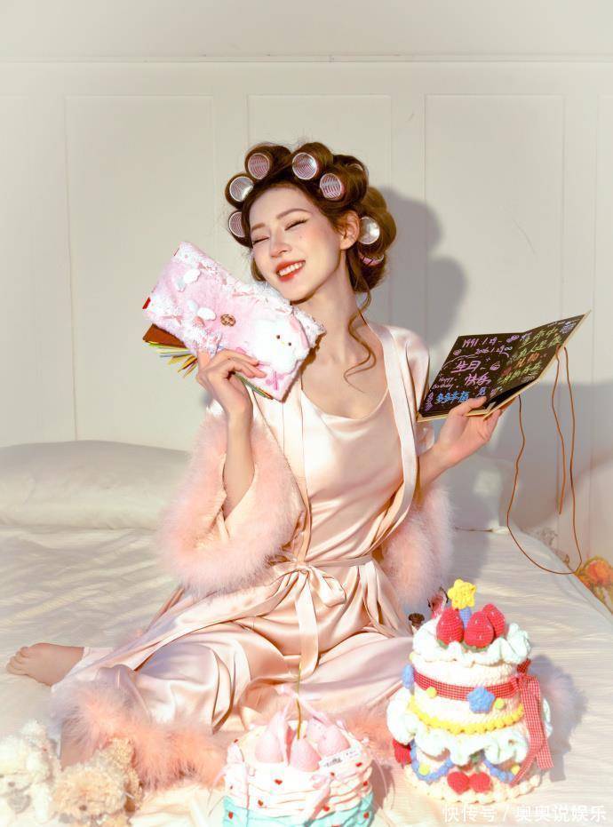 诞辰写照:穿睡袍顶鬈发筒的“慵懒好意思学”而另一组诞辰写照,则展现了扫数不同的一面。莫得丽都治服,她仅仅松松垮垮地套了件粉色缎面睡袍,头发上别着渊博的鬈发筒,对着镜头长远慵懒又俏皮的笑颜。