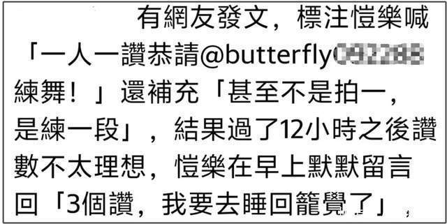 可是这个“以后”也太短了——时隔不到24小时,蝴蝶姐姐又一忽儿回复了网友留言,有东说念主对外喊话,示预料要看蝴蝶姐姐练舞复出就点赞,然后无语的来了,直到蝴蝶姐姐本东说念主现身回复,就只须3个东说念主点了赞。