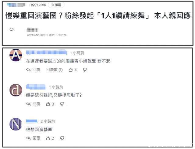 台媒报说念了蝴蝶姐姐两条最新动态,她尝试复出的工夫直率又昭着,凌晨晒犬子看到网友留言,她特意挑了一个让我方练舞复出的挑剔回复,留住一句“哈哈哈先不要”。