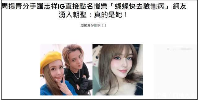 动作干与风云第三位女主角的蝴蝶姐姐,一样被掀了老底,她和罗志祥领略多年,如故罗志祥公司签约艺东说念主,在罗志祥有周扬青这个女友的情况下,蝴蝶姐姐终年和他传绯闻,本以为是文娱圈炒作工夫,没猜度是弄假成真。