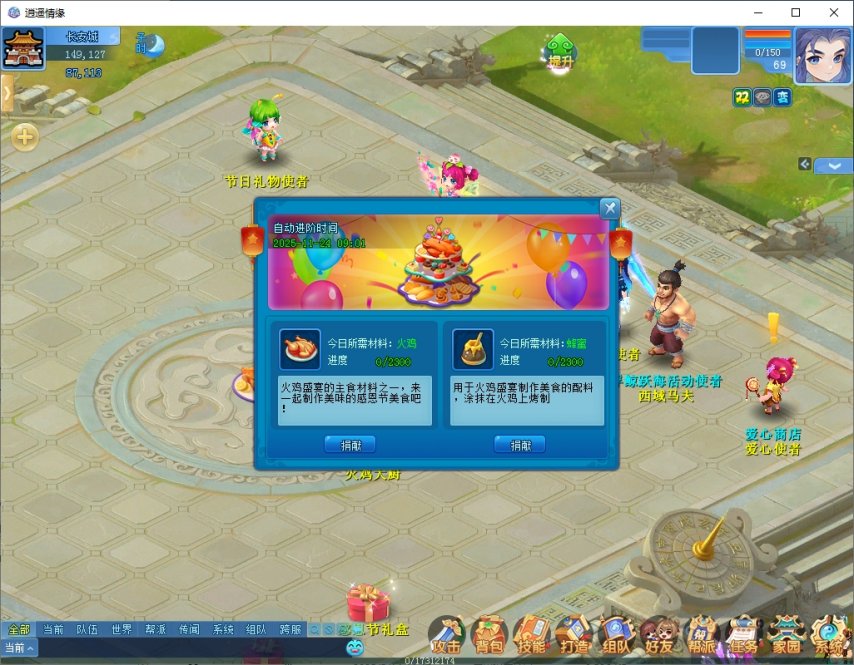 感德节到了,大家一谈参与火鸡盛宴吧!少侠可通过完成普通看成、捕捉火鸡看成取得火鸡盛宴的材料。玩家不错捐献火鸡盛宴的材料来加快火鸡盛宴成型的时辰,当材料不实时火鸡盛宴也会在相适时辰内自动升级到下一阶段。